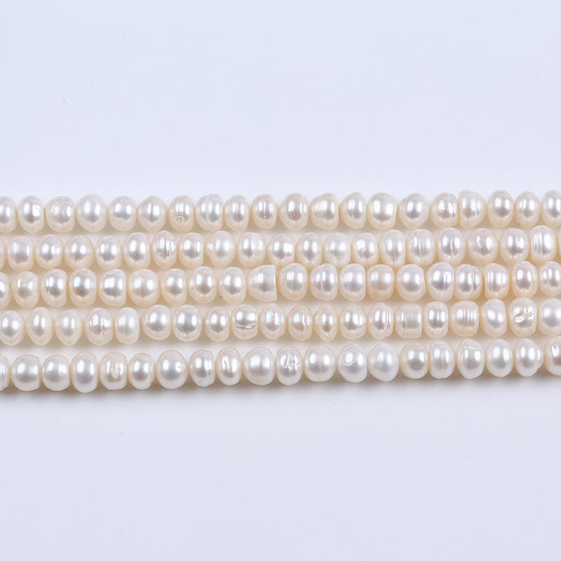 Perlas Sueltas Redondas y Planas Blancas de Agua Dulce Natural de Zhuji de 7-8 mm para Bisutería y Accesorios de Bricolaje