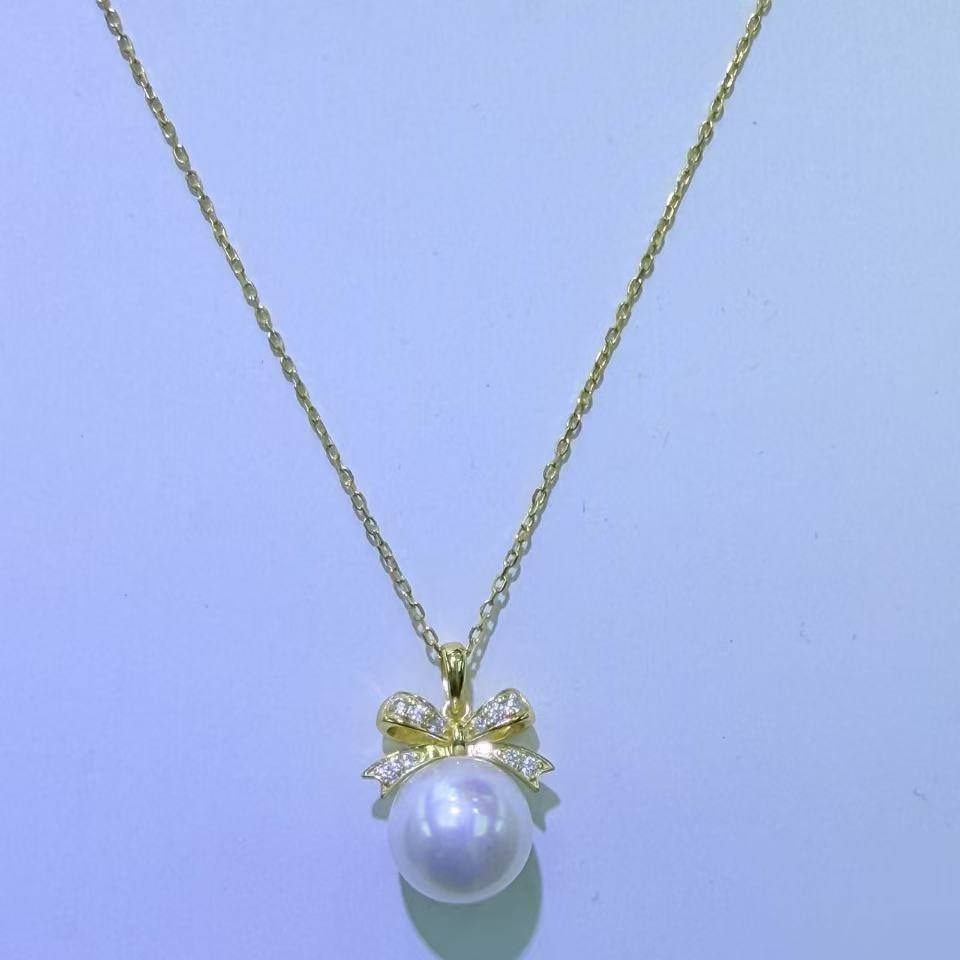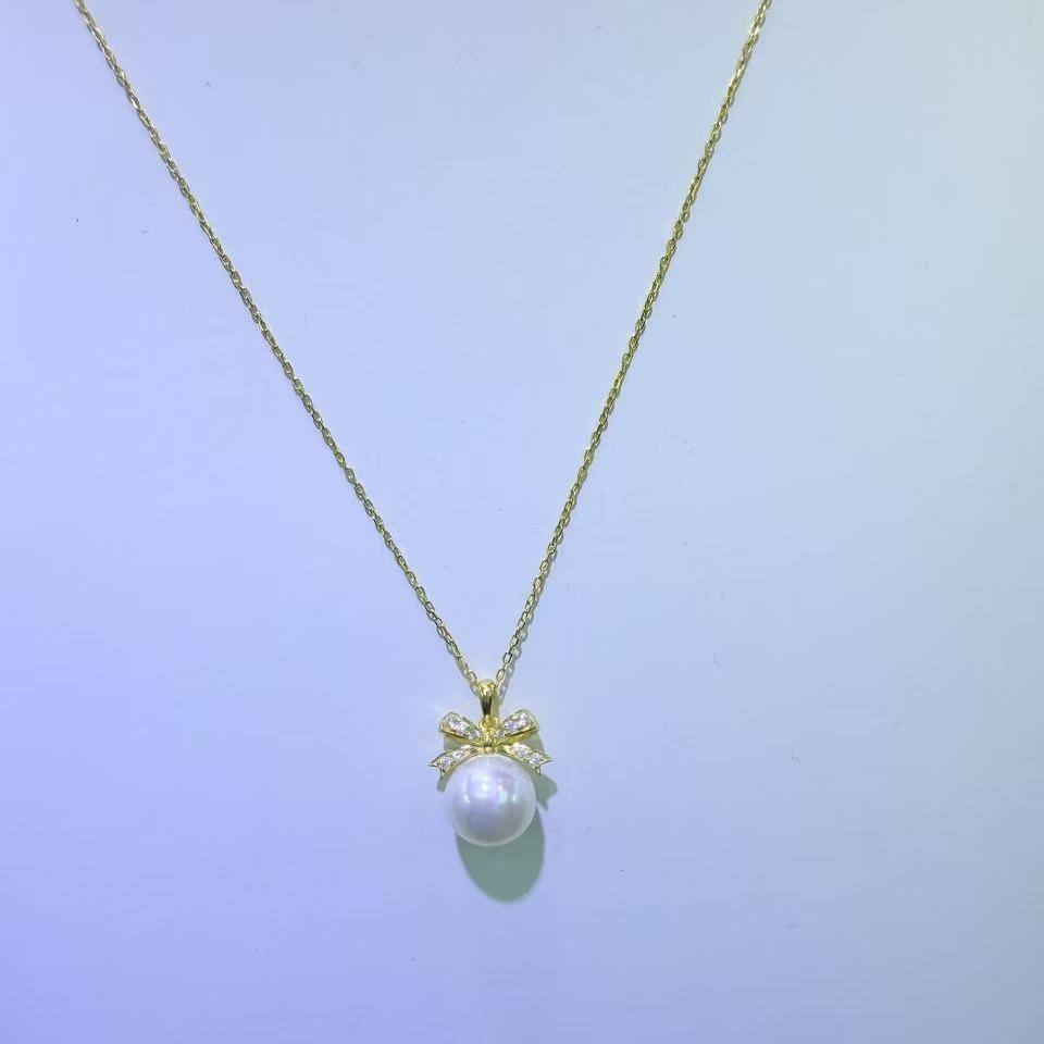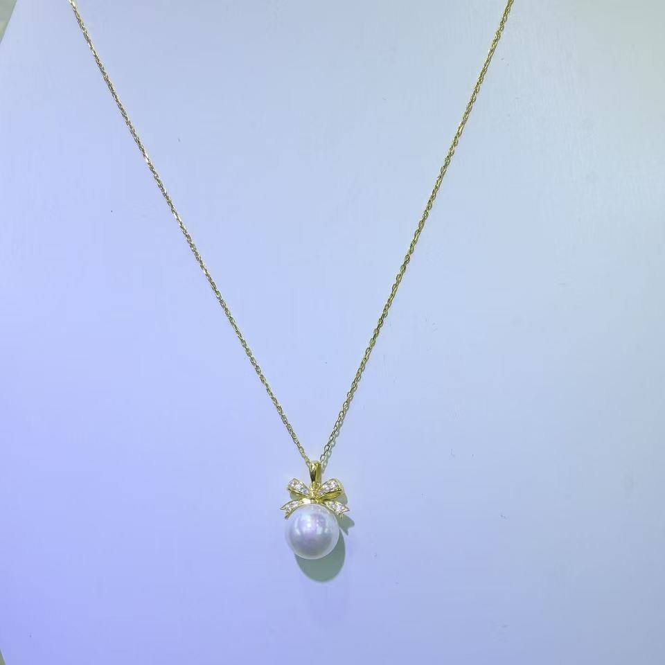 Collar de Perlas de Agua Dulce Naturales de Zhuji, 10-11 mm, Redondas, Casi Impecables, Aurora, Accesorio de Alta Gama con Diseño de Lazo