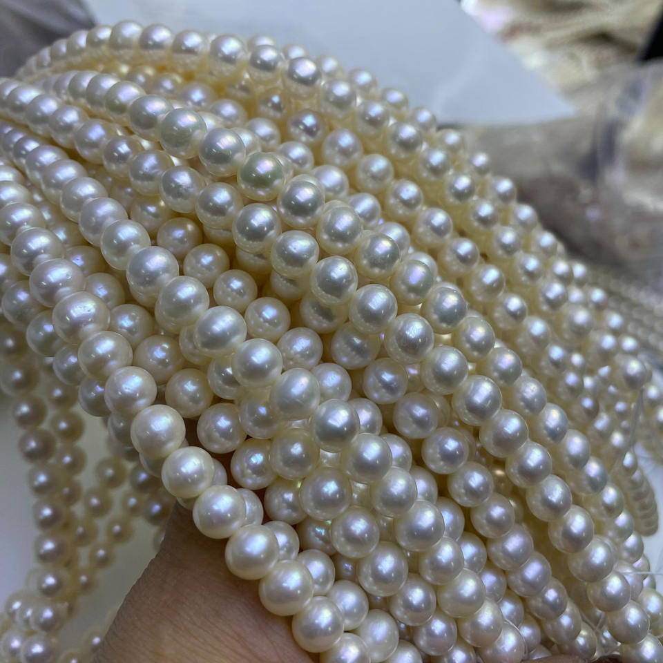 Perlas sueltas de Color rosa perla de concha Natural de 10mm para joyería A62 100g forma de patata con agujero recto para la fabricación de joyas