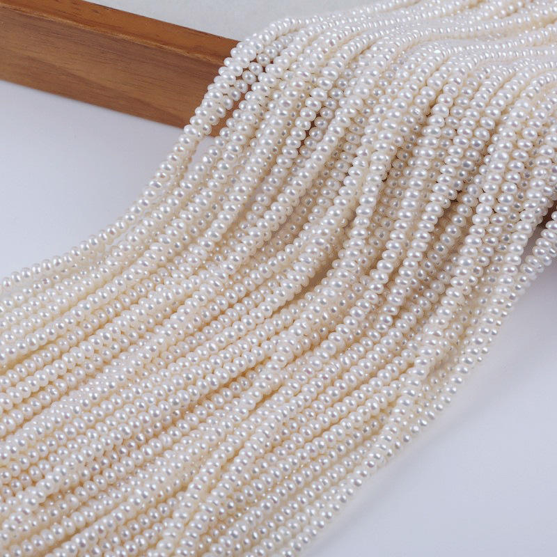 Perlas de Agua Dulce Naturales Recicladas de Zhuji de 3-4 mm, Hebra Suelta Semi-Acabada para Accesorios de Collar DIY con Orificio Central