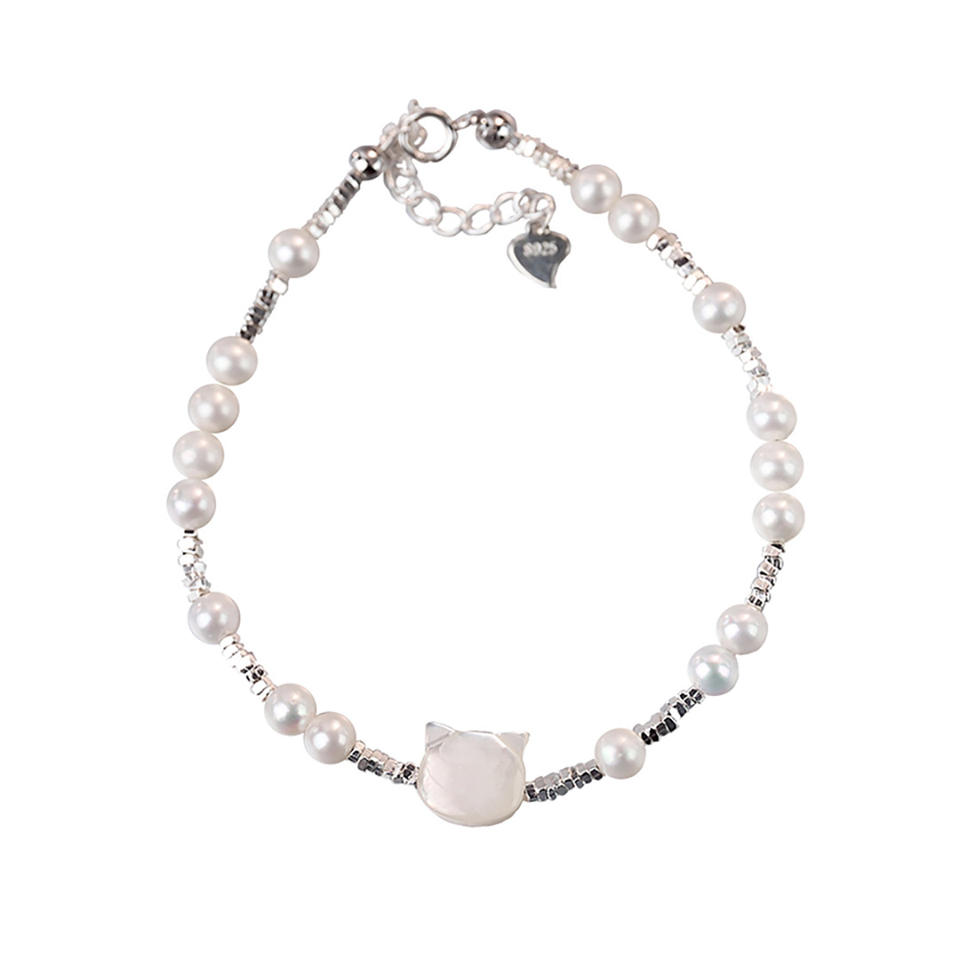 Brazalete de Concha de Mariposa Blanca de Zhuji con Perla de Agua Dulce y Capas de Plata Rota, Artículo Popular en Xiaohongshu y Cat