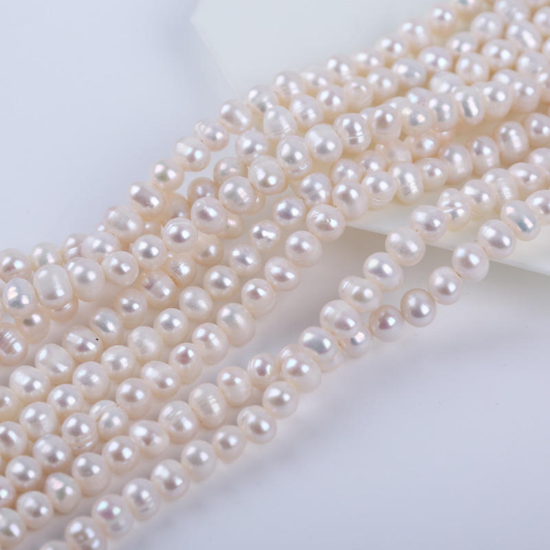 Cadena de Perlas de Agua Dulce al por Mayor de Zhuji, 5-6 mm, Perlas Redondas Tipo Patata para Hacer Collares y Pulseras