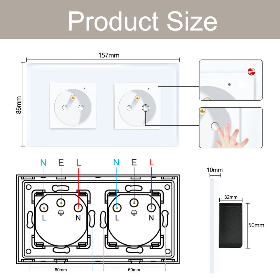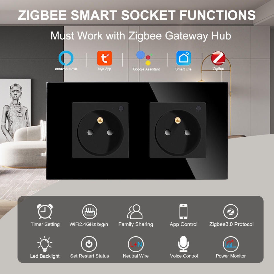Zócalo ZigBee Smart FR, monitor de rendimiento de Oulets franceses de pared de doble enchufe, funciona con Google Home Smart Life Alexa