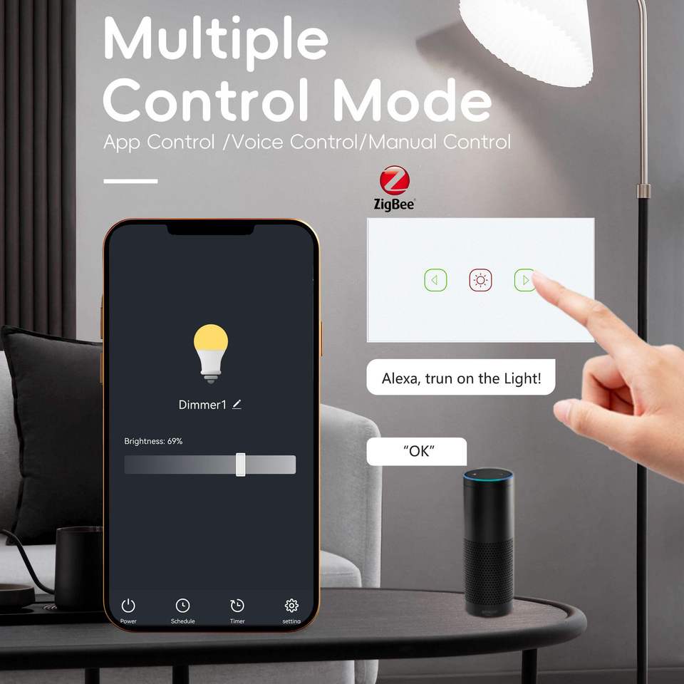 Zigbee Smart Touch Dimming Switch Panel 100000 Times Mechanical Life Overload Protection Remote Control For Home Lighting