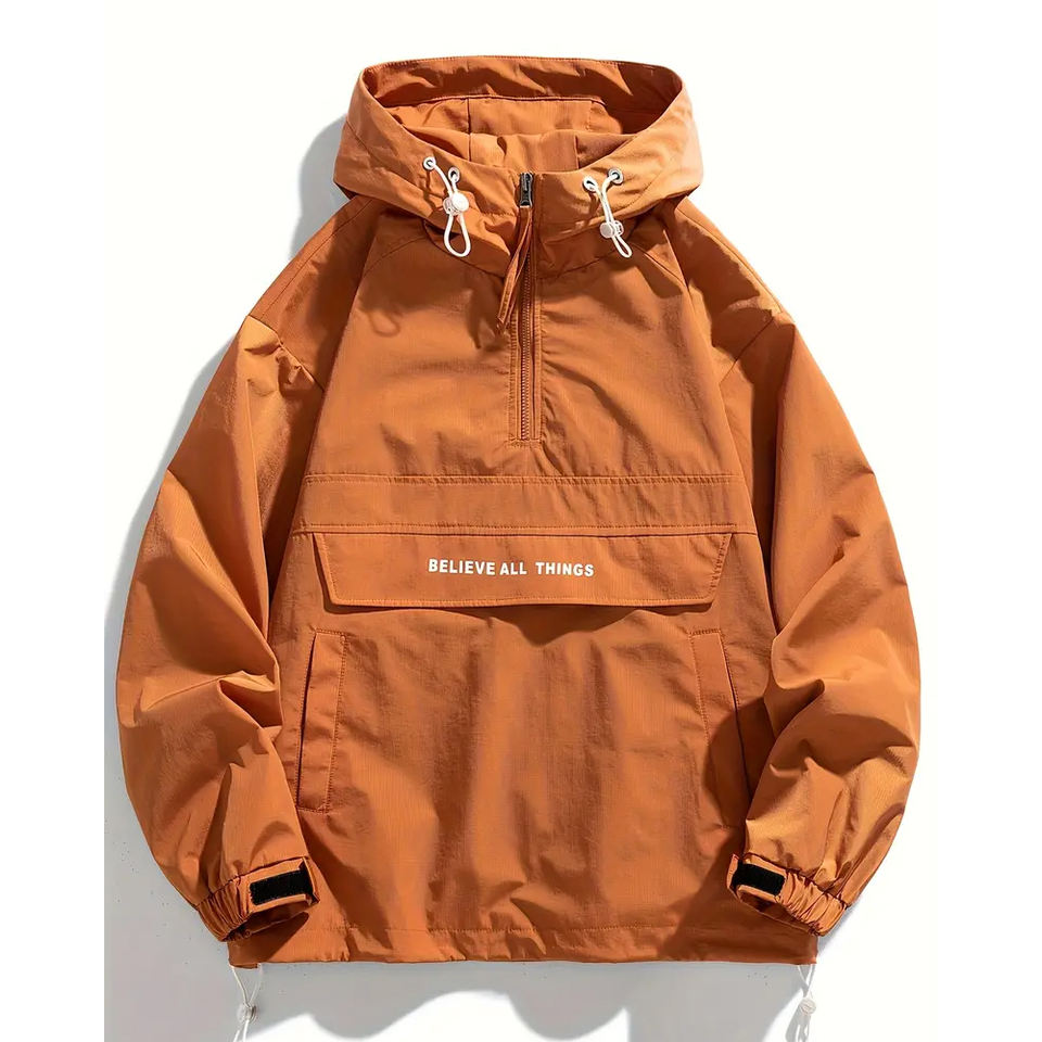 Cierre de cremallera y Capucha ajustable Chubasquero ligero Ropa de invierno para hombres Chaqueta deportiva a prueba de viento con capucha de media cremallera POR INDUSTRIAS INCREÍBLES