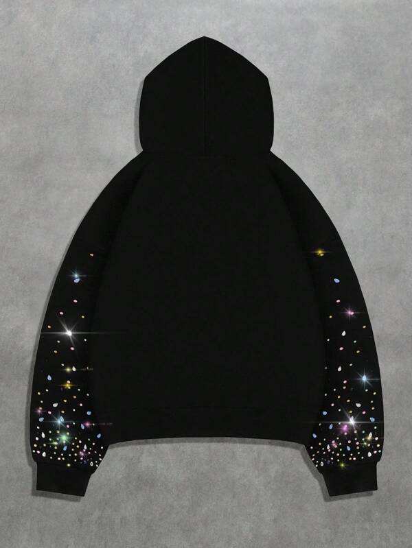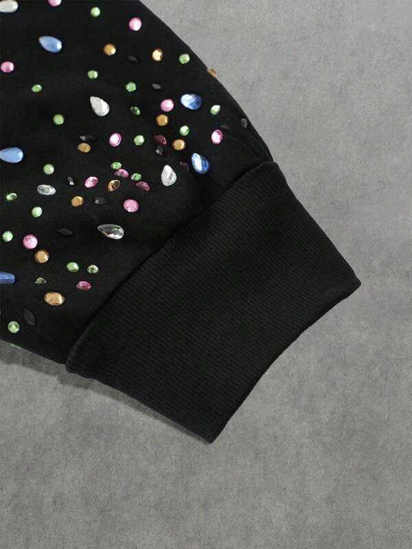 Sudaderas con capucha con cremallera y mangas con tachuelas de diamantes de imitación multicolores, ropa de calle de lana de gran tamaño, chaqueta Hotfix de cristal, diseño de logotipo personalizado