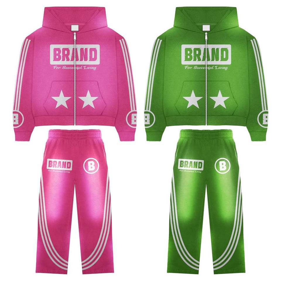 Nombre del producto::Chándal de estilo acampanado con lavado ácido de impresión de pantalla
