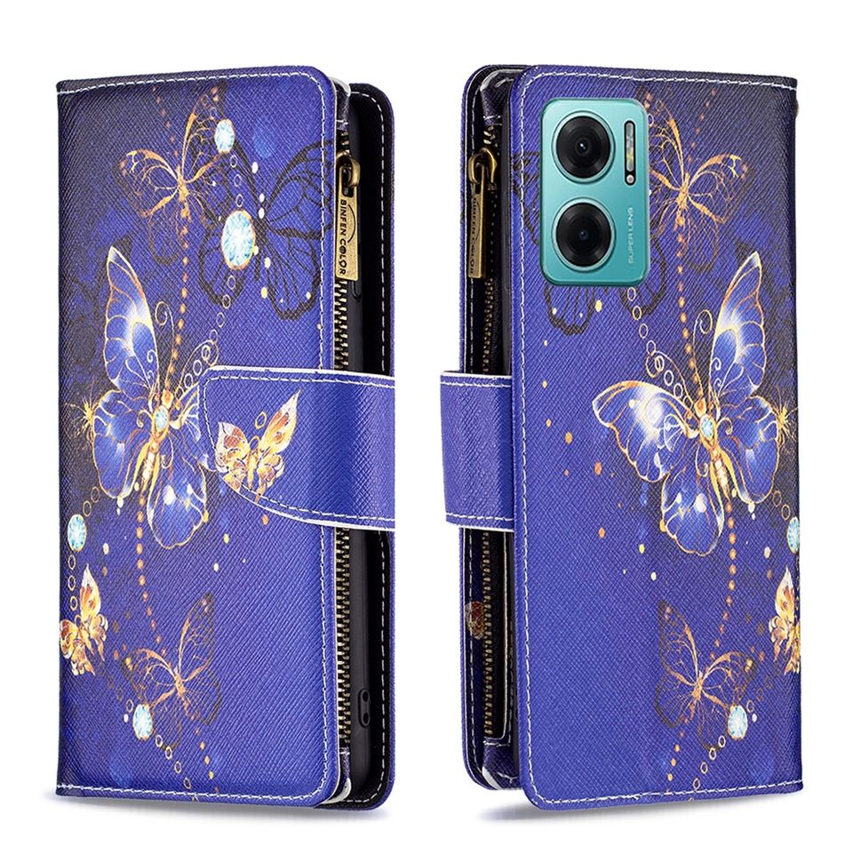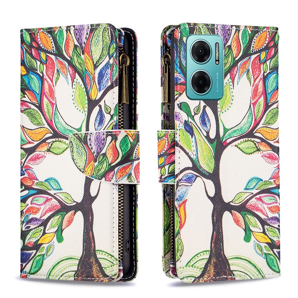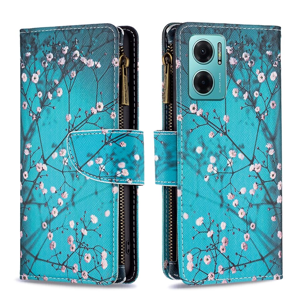 Funda tipo cartera con diseño de cremallera para Redmi 10C/12C/13C, para MI POCO M4 PRO 4G Funda con tapa de PU multifunción