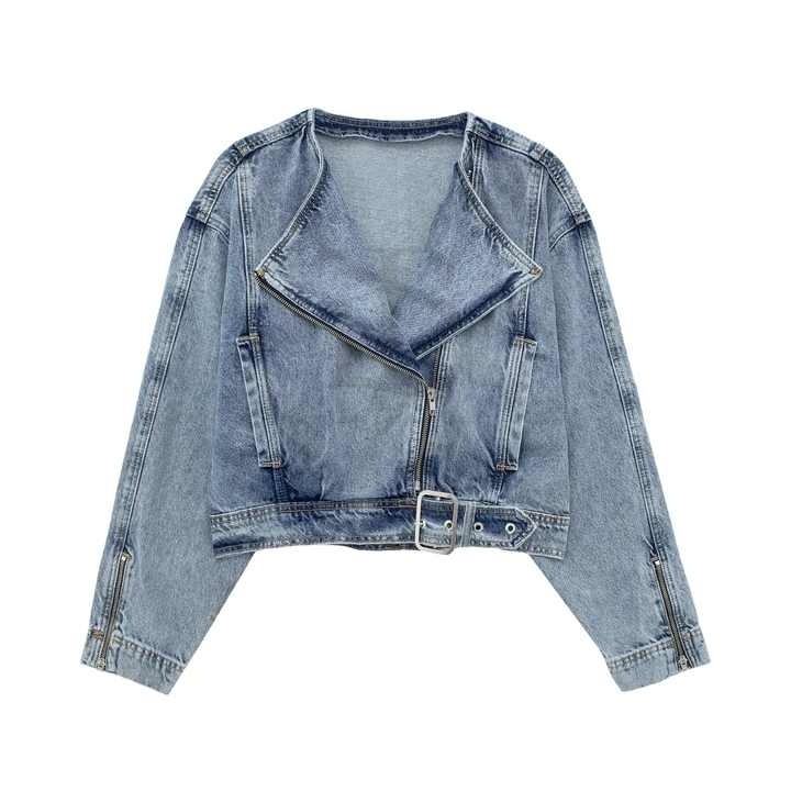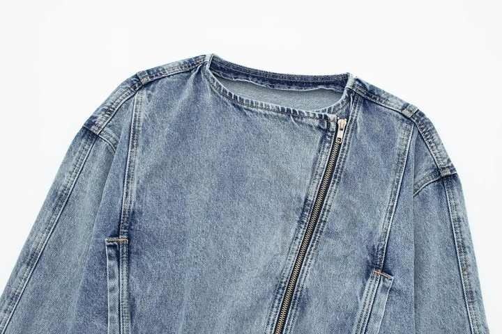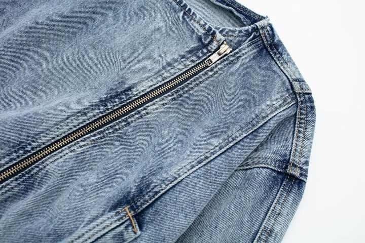 Chaqueta con cremallera Fly OEM personalizada nueva chaqueta vaquera lavada Vintage para mujer con cremalleras chaqueta de motocicleta Top corto para mujer