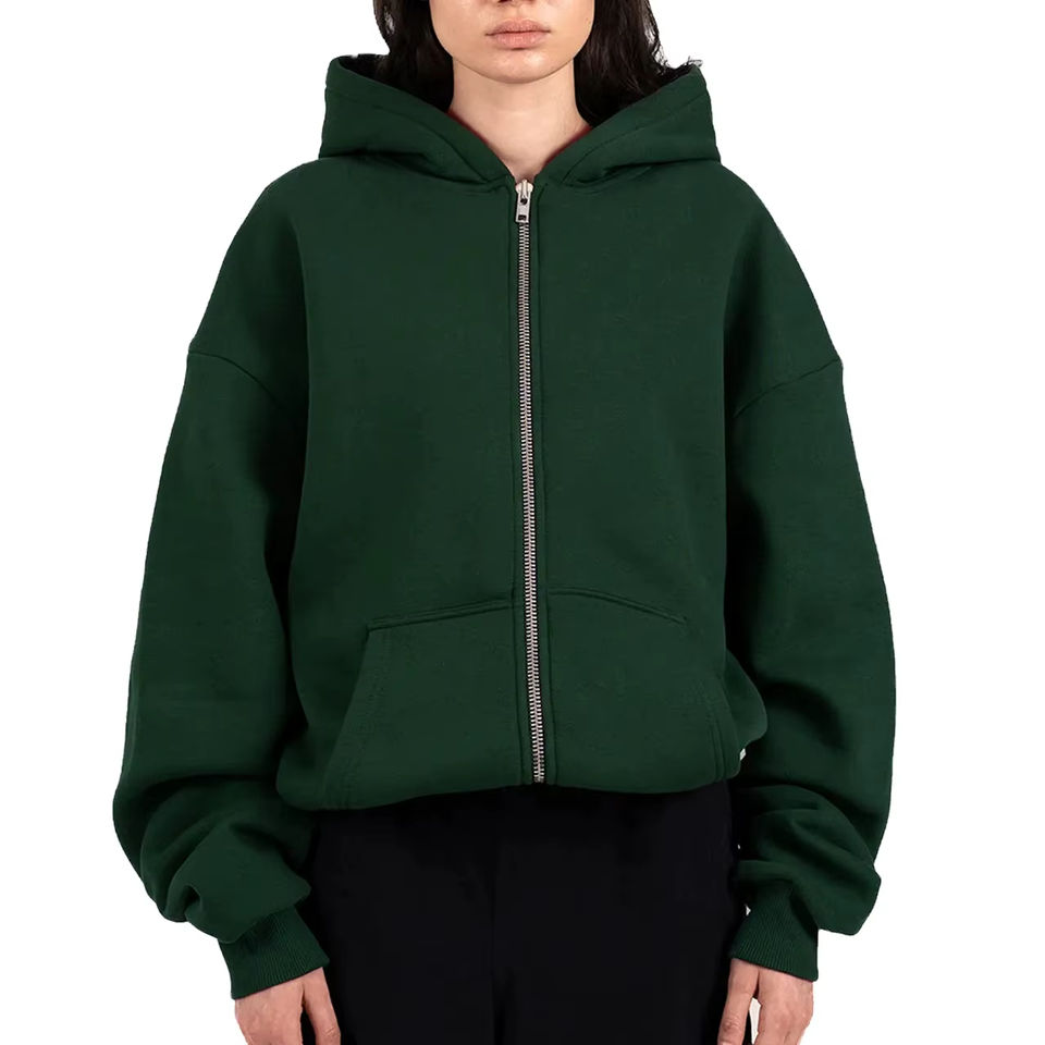 Sudadera con Capucha y Cremallera, Color Gris Oscuro, Corte Cuadrado, de Lujo, Lisa, con Hombros Caídos, Talla Grande, Unisex, Fabricante Process Impex
