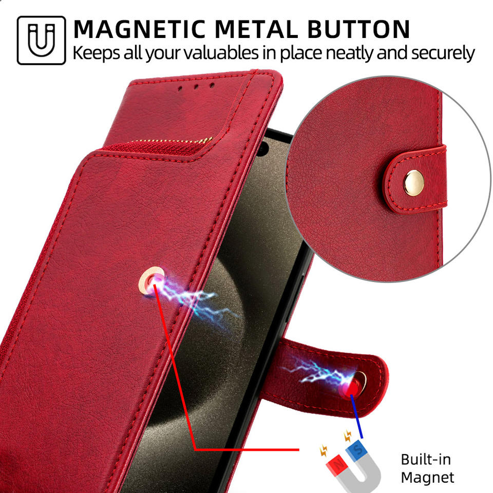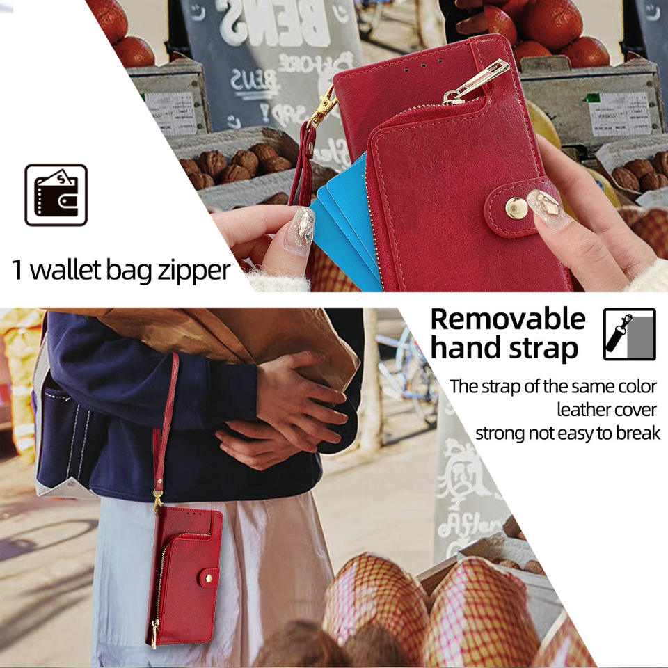 Funda de cuero con cremallera para teléfono 15 Pro Max 14 Plus 13 12 11 organizador de monedas fundas de teléfono móvil de lujo para Samsung S24 S23 A35 elegante
