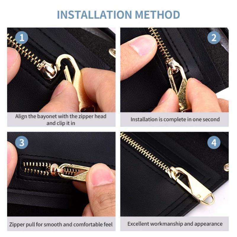 Kit de reparación de cremalleras, cabezal de cremallera de repuesto para bolsa de viaje, maleta, costura artesanal, 4 piezas, tirador de cremallera de metal multiusos