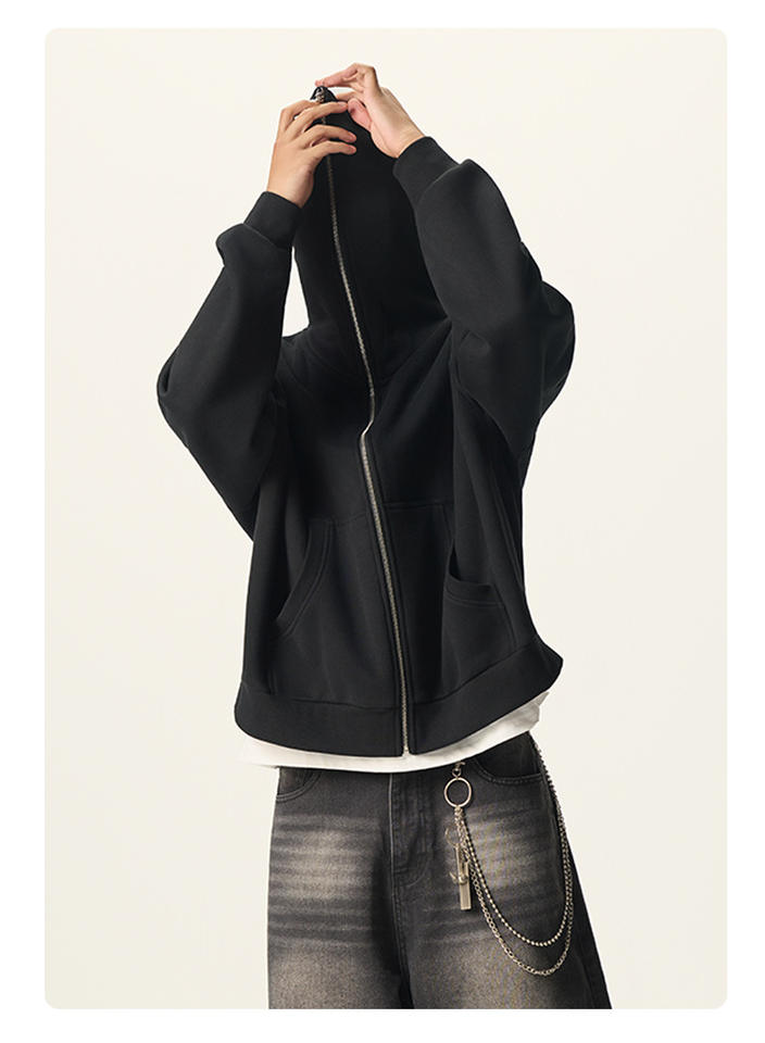 Cremallera a través de la parte superior Boxy Short Wide Dark Hip Hop 350G Fleece Zipper Hoodie