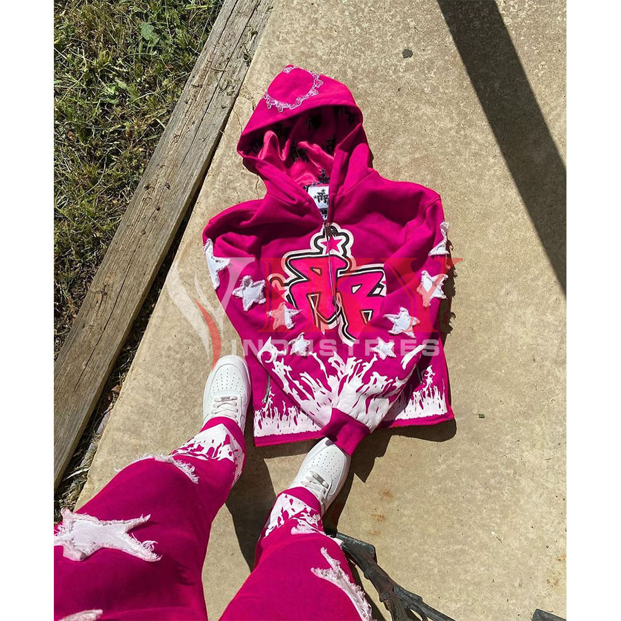 Nombre del producto::Chándal de estilo acampanado con lavado ácido de impresión de pantalla