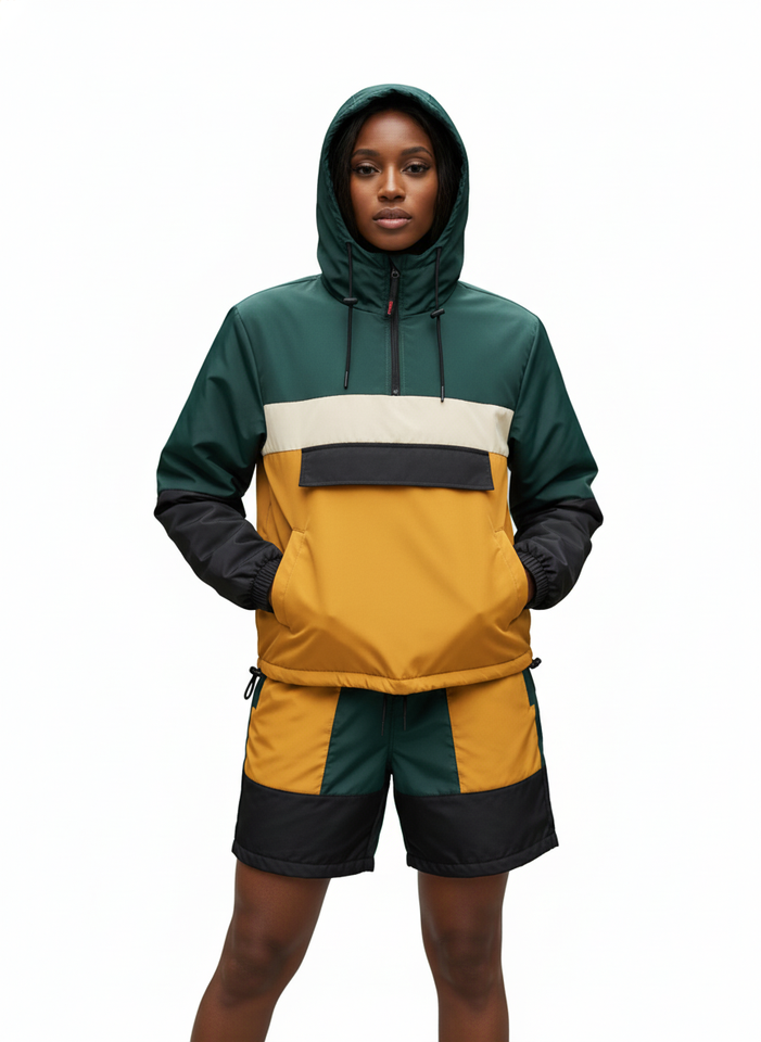 Conjunto de dos piezas para hombre con cremallera OEM, chaqueta y pantalones cortos cortavientos personalizados, conjunto de dos piezas cortavientos reflectante de nailon.