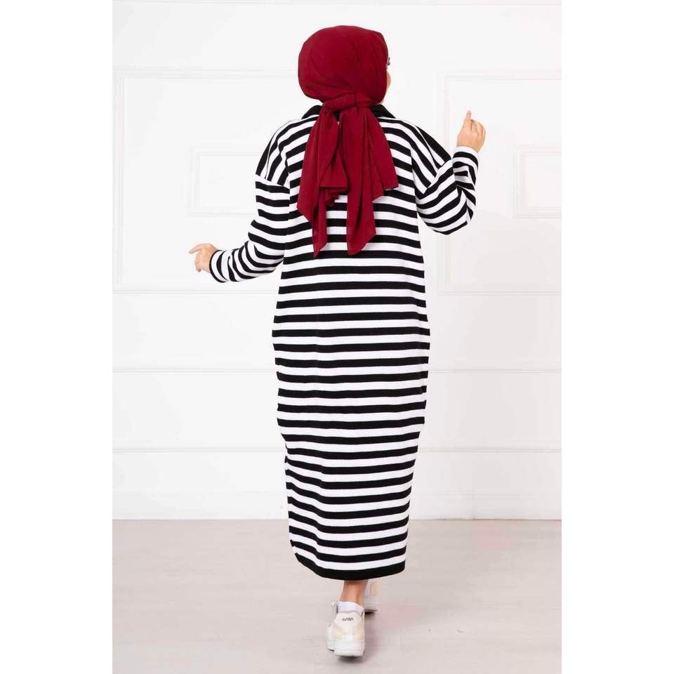 Vestido de punto a rayas con cremallera negro