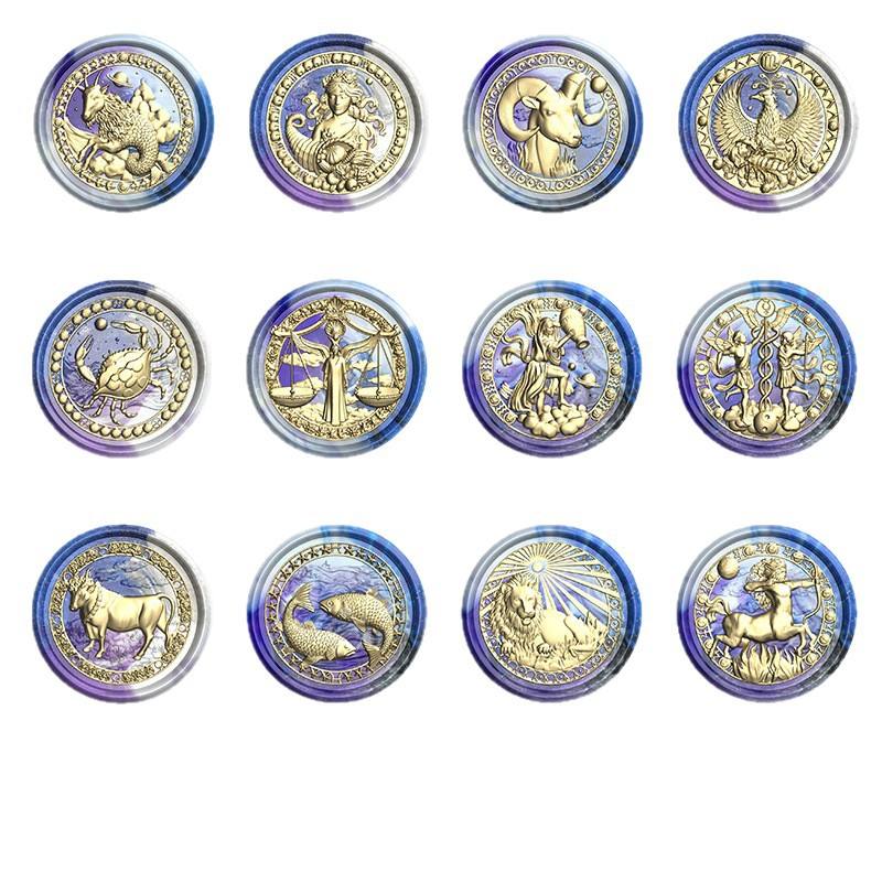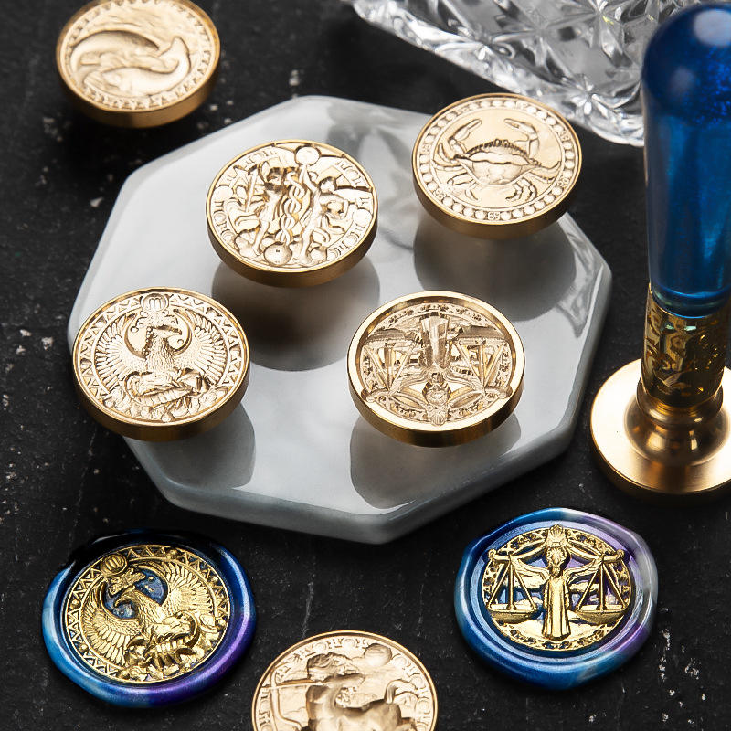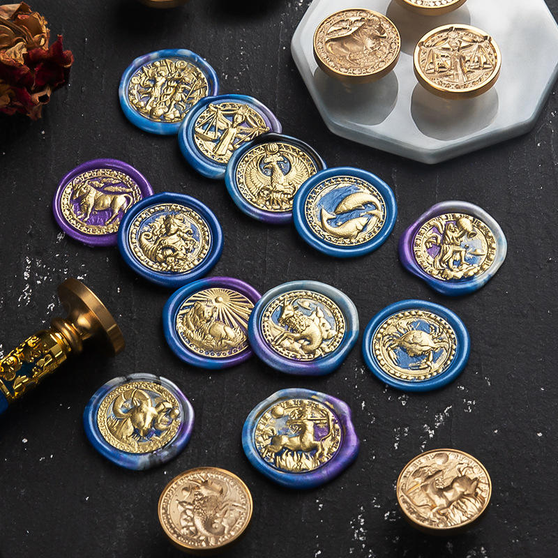Sellos de Cera Redondos de Cobre con los Doce Signos del Zodíaco en Relieve para Decoración de Papel y Diarios