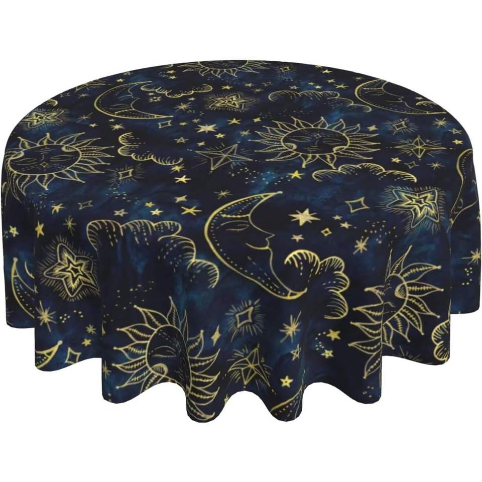 Rueda del zodiaco y mantel de signo de estrella patrón de cielo nocturno estrellado geométrico tela impermeable para decoración de Picnic de hogar y Hotel