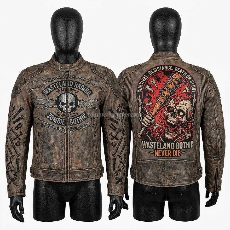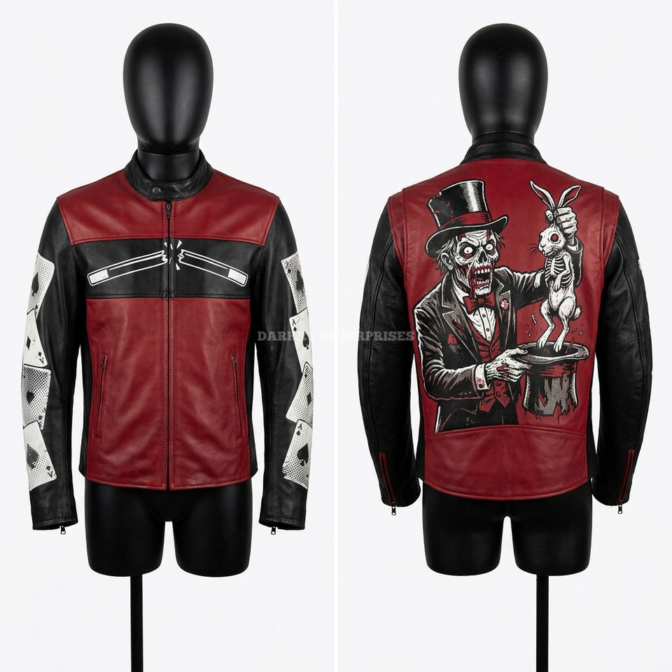 Chaqueta de Cuero con Diseño de Mago Zombi para Hombre, Chaqueta de Motociclista Roja y Negra, Chaqueta Personalizada con Estampado de Conejo Mágico de Terror