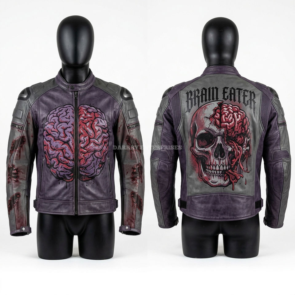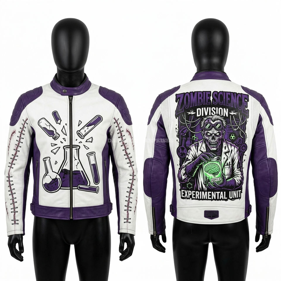Chaqueta de cuero para hombre con gráfico de rascado de garra de ratón zombi, estilo motociclista, amarilla desgastada, abrigo artístico