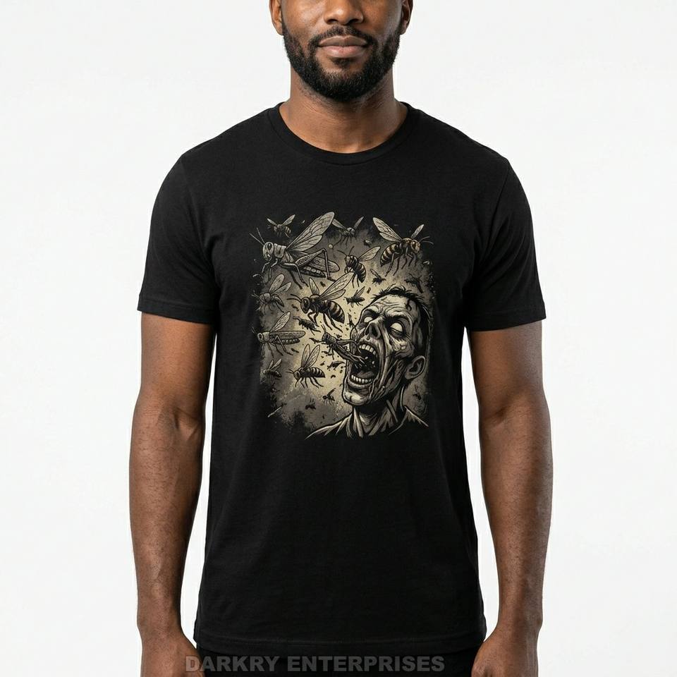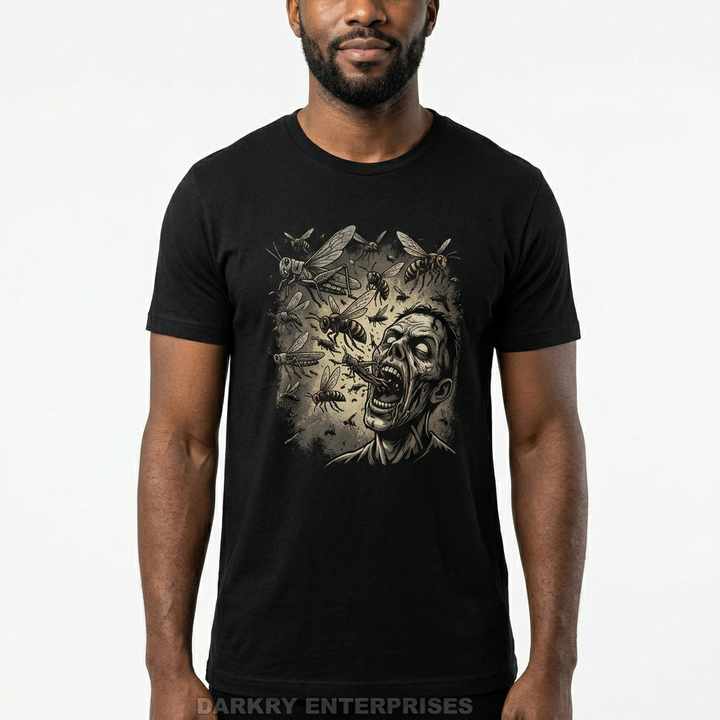 Camiseta Zombie Swarm para hombre, camiseta con gráfico de insectos, estilo vintage de terror, camiseta de algodón personalizada, fabricante de ropa urbana, estampado de alta calidad