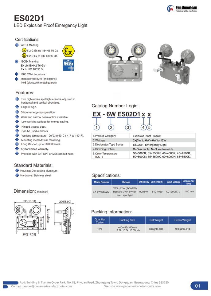 Zona 1 ATEX IECEX LED Doble cabeza Luces LED de emergencia a prueba de explosiones para lugares peligrosos Petróleo y gas