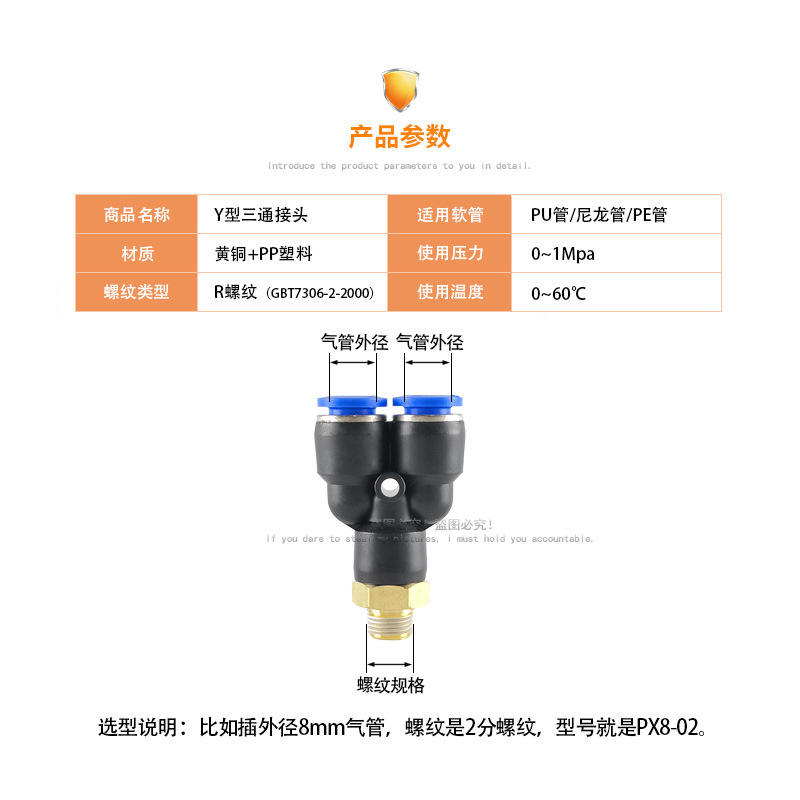 Conectores Neumáticos de Conexión Rápida Zoni, Tipo Y, de Cobre y Plástico, PX6 01 8 02 10 03, para Herramientas Neumáticas
