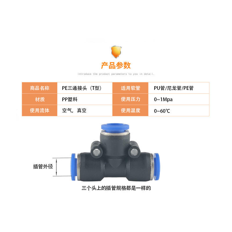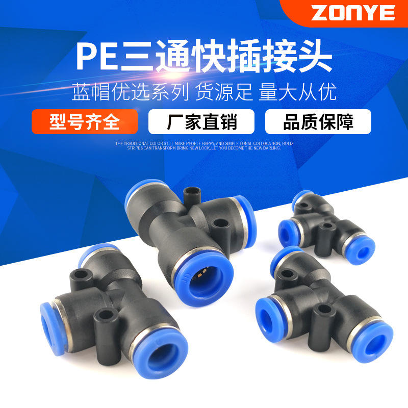 Conector en T Neumático Zoni, Conexión Rápida de Plástico PE4 5 6 8 10 12 14 16 para Mangueras de Aire