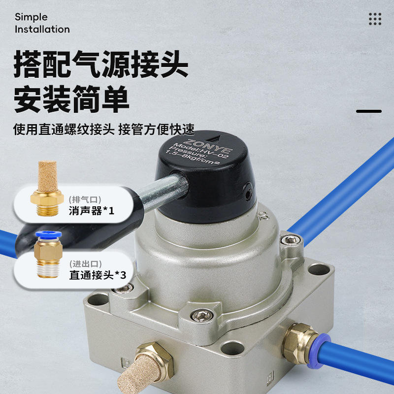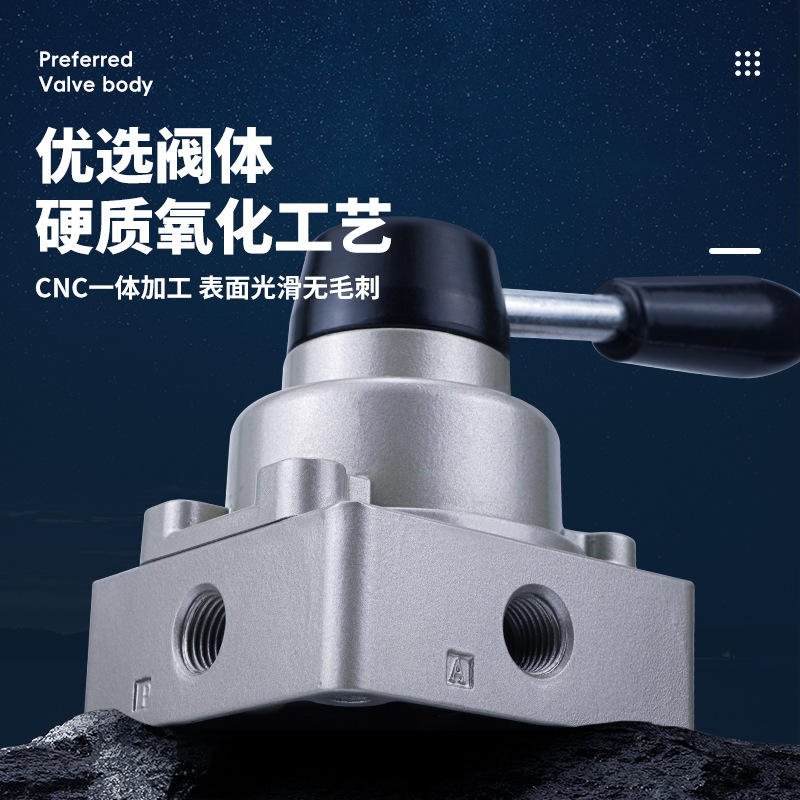 Válvula de Control Manual Zoni Pneumatics HV-02-03-04 de 2 Posiciones, Tipo Palanca para Aire Comprimido/Gas