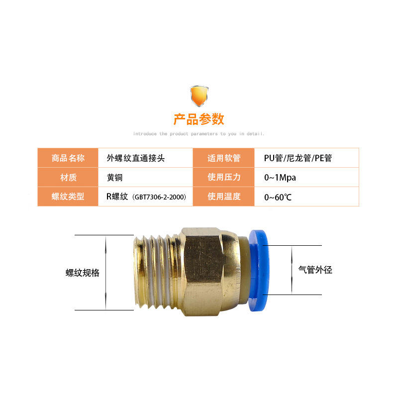 Conector Neumático de Cobre y Plástico de 6mm con Rosca Externa Recta para Manguera de Aire, Marca Zonye