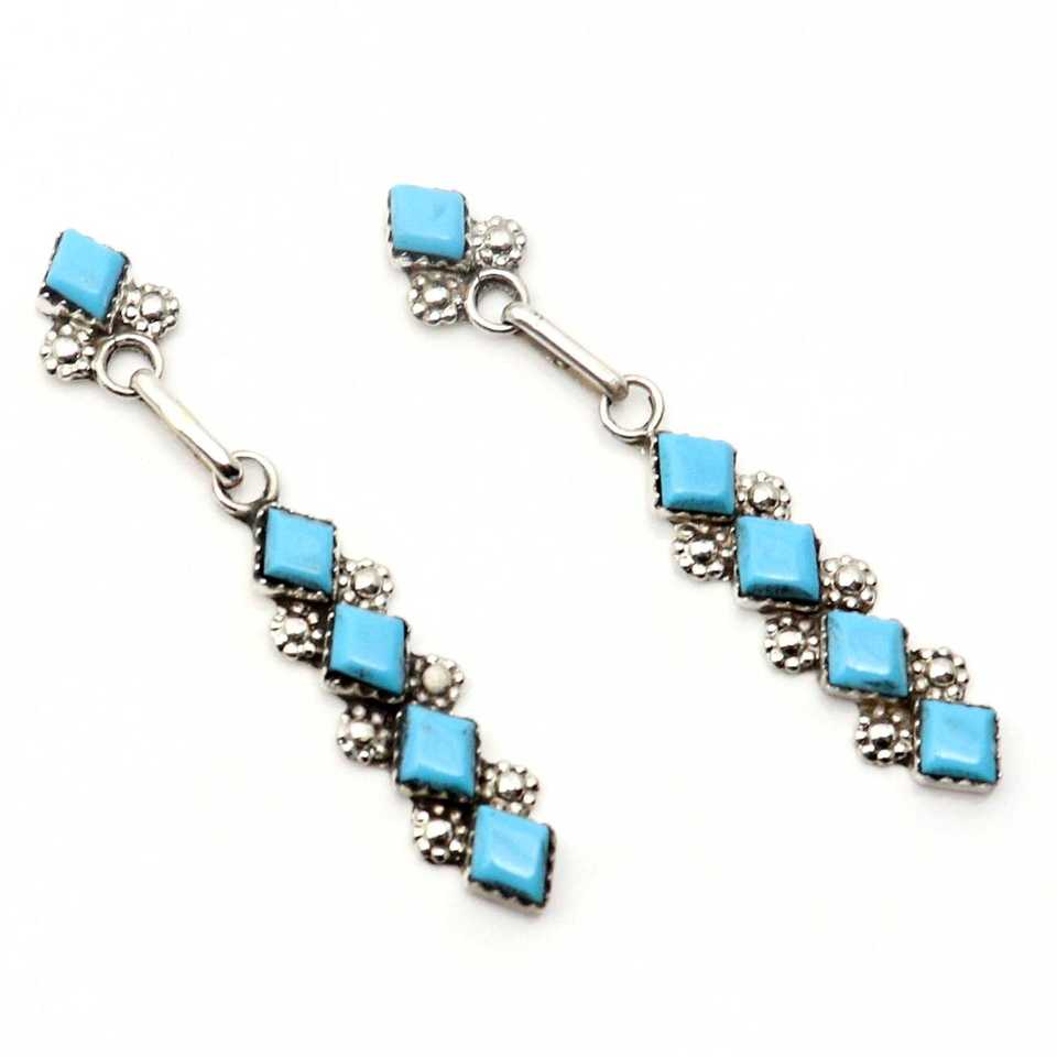 Pendientes colgantes de turquesa de Plata de Ley 925 Zuni con ajuste de bisel de patrón de corona de diamante y chapado en oro para regalos de fiestas