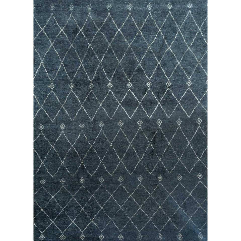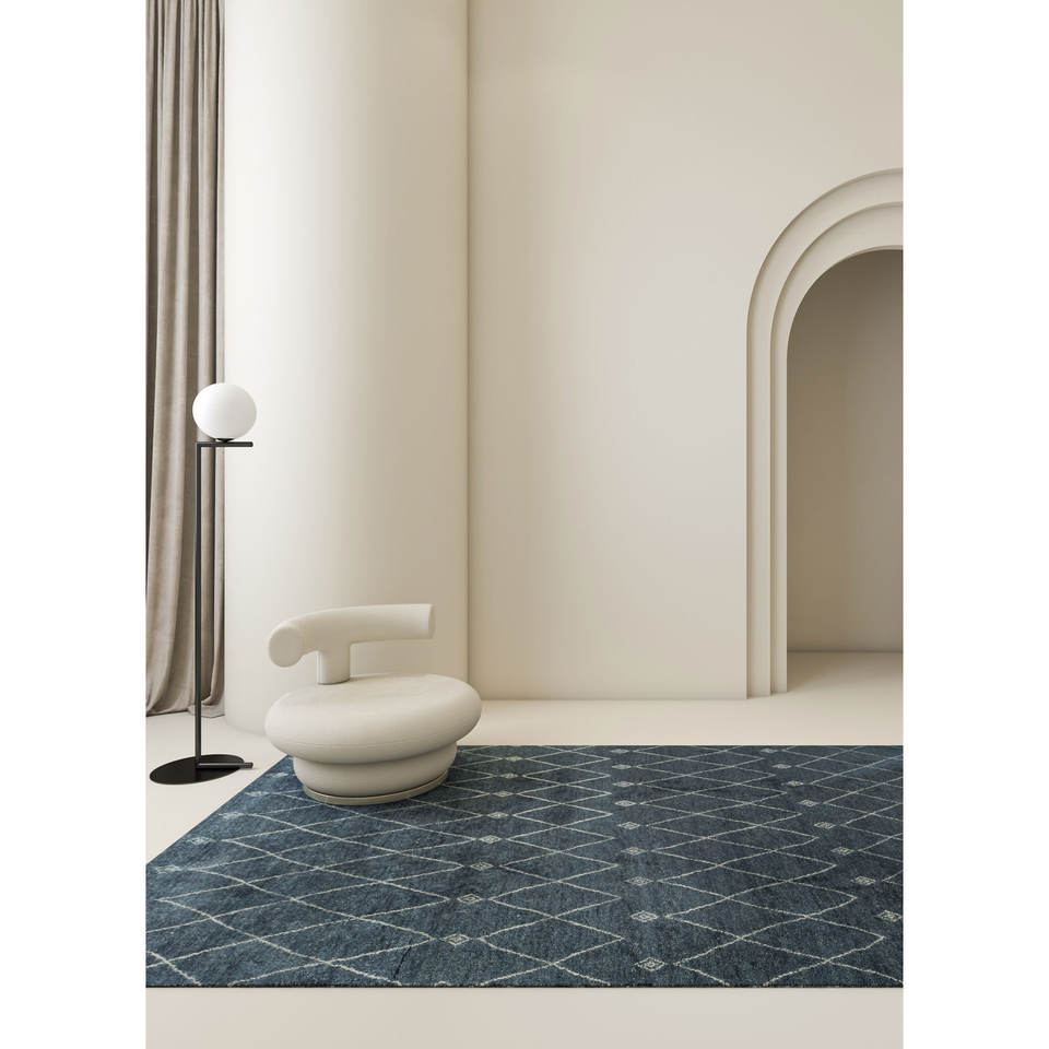 Alfombras de Lana Anudadas a Mano con Patrón Geométrico Azul Zuri, 9x12, Rectangulares, para Pasillo, Entrada, Habitación, para Adolescentes - LKM-2098