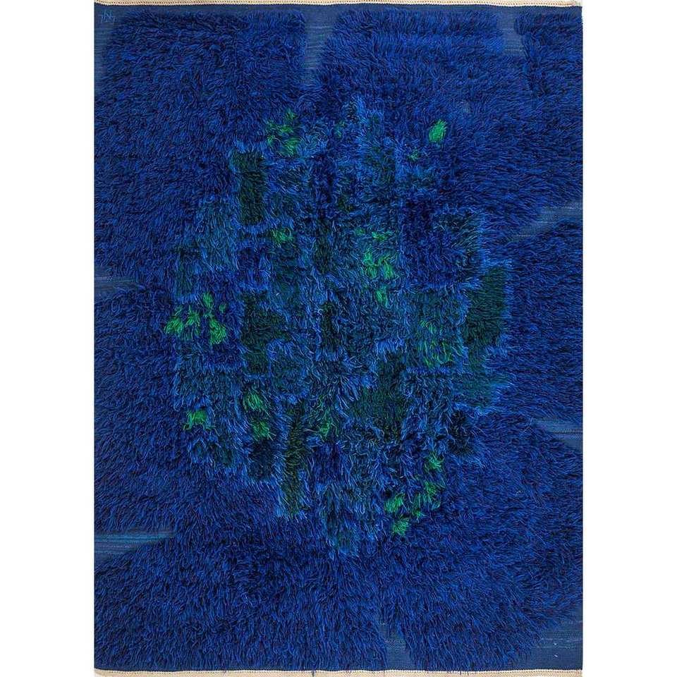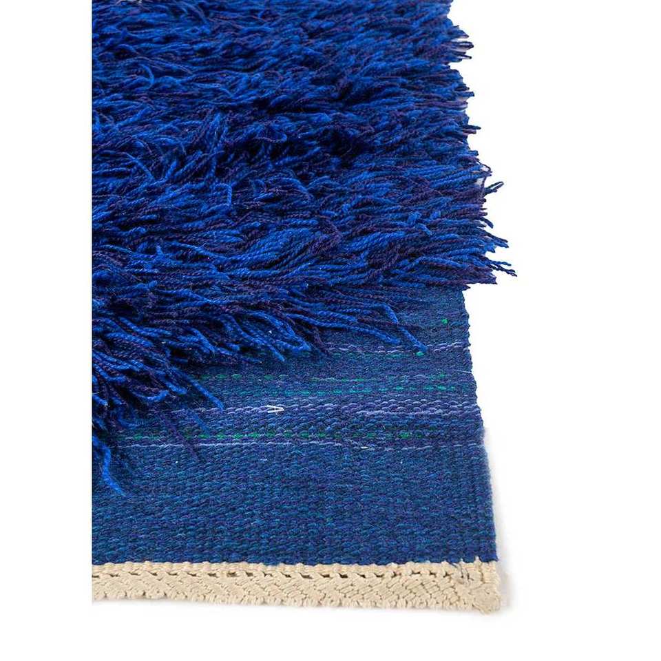 Alfombra de Lana Anudada a Mano Zuri Azul Paem-688 Rectangular 9x12 con Patrón Abstracto para Decoración de Sala de Estar Juvenil y Uso en Pasillos