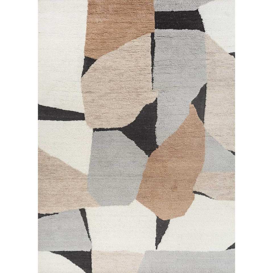 Alfombra de Lana Anudada a Mano Zuri Blue AKWL-1803, Diseño Abstracto 3D, Alfombra Rectangular para Sala de Estar, Pasillo o Entrada