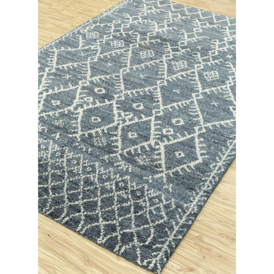 Alfombra de Lana Anudada a Mano Zuri Azul, Diseño Geométrico Abstracto, Rectangular, para Sala de Estar, Pasillo, Modelo PKWL-03