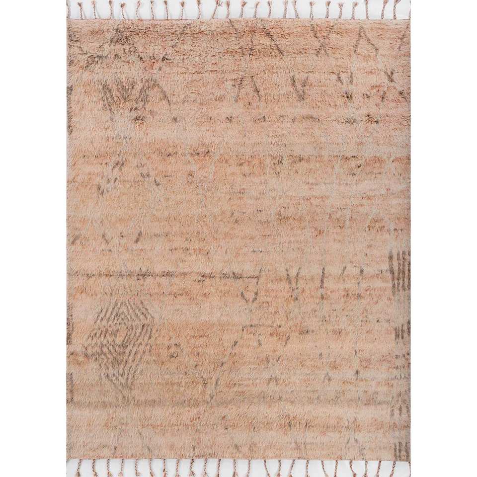 Alfombra de Lana Anudada a Mano Zuri, Diseño Abstracto Rectangular con Rayas Rojas y Naranjas, para Entrada o Pasillo, 9x12, Modelo AKWL-7232, para Habitación de Adolescentes