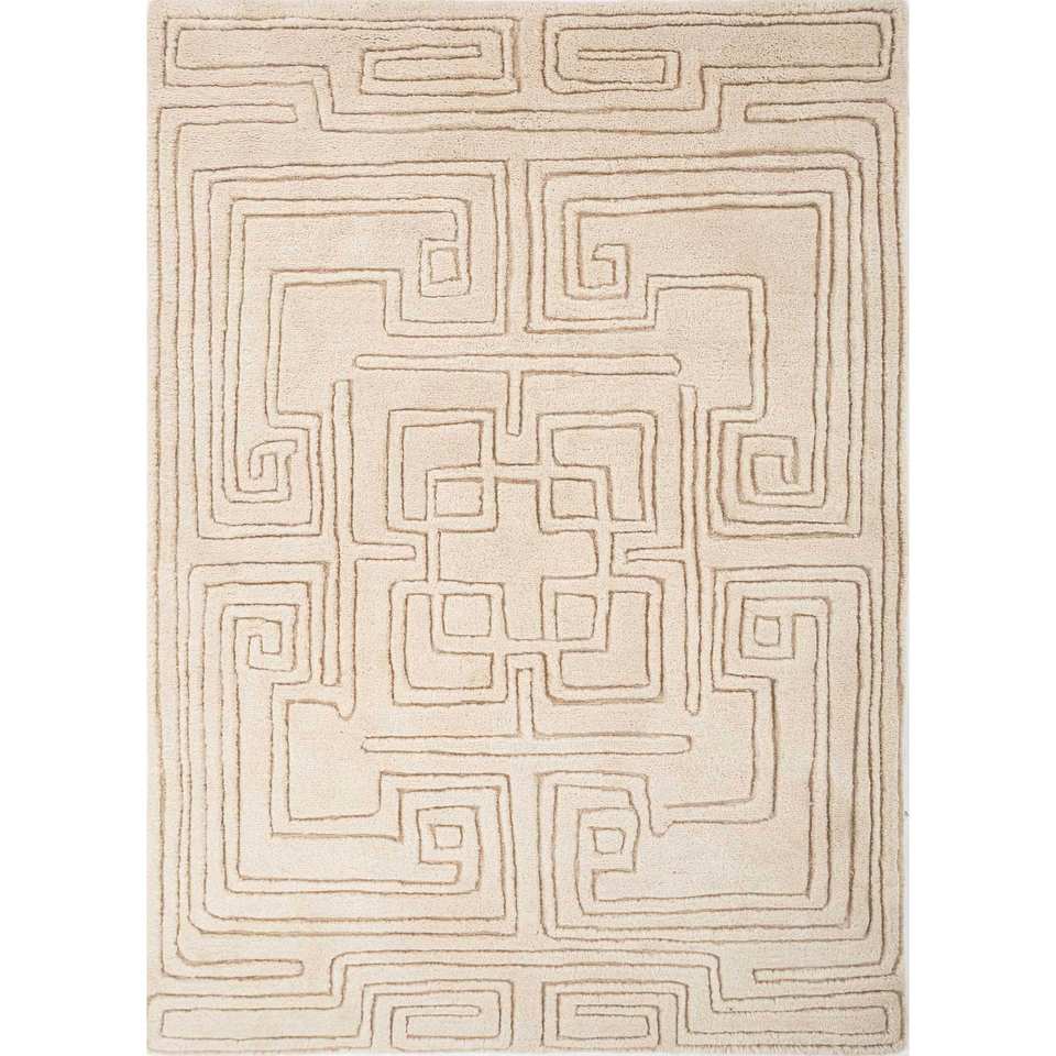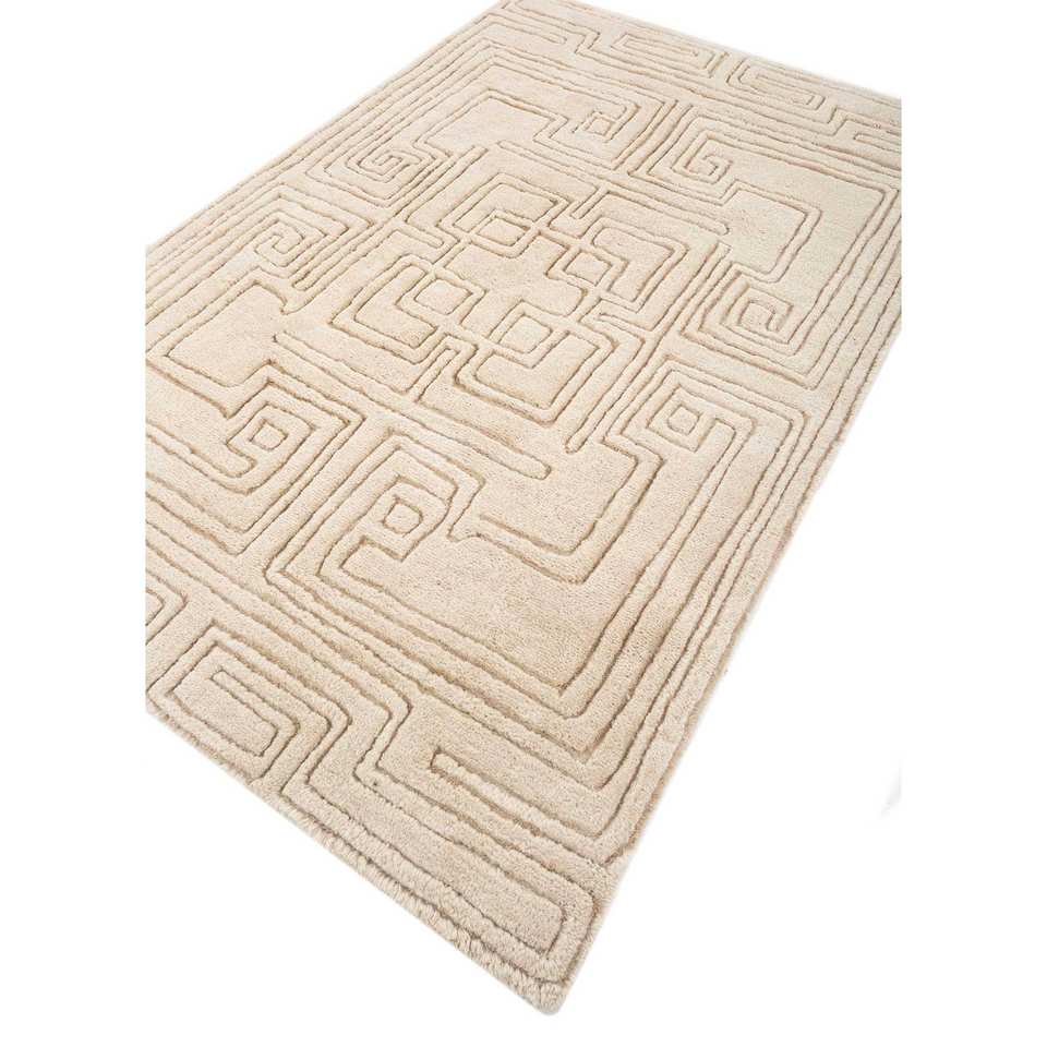 Alfombras de Lana Anudadas a Mano Zuri Ivory RA-1142, Diseño Geométrico Abstracto para el Hogar, Sala de Estar, Dormitorio, Adolescentes, Hechas a Mano en Tabriz, Rectangulares