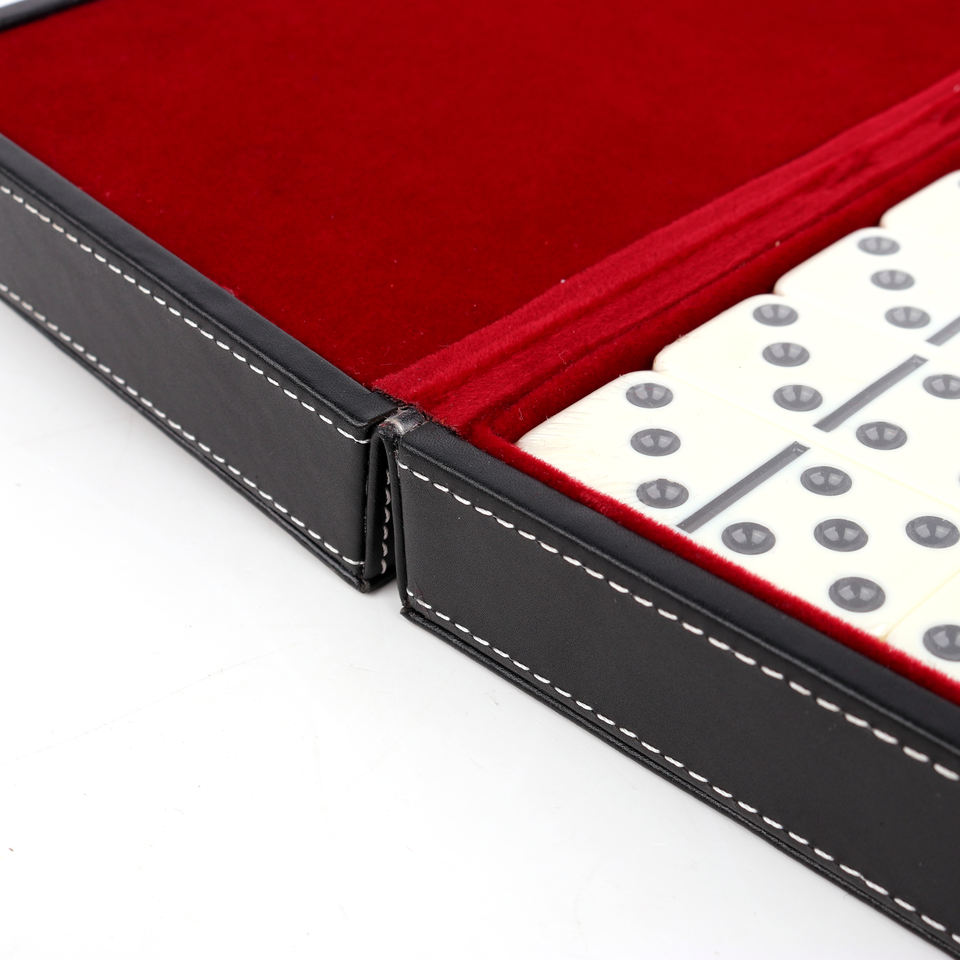 Caja de regalo de lujo de cuero y terciopelo rojo, cierre de botón de metal con solapa, con forro grande personalizado, caja de almacenamiento profesional de dominó