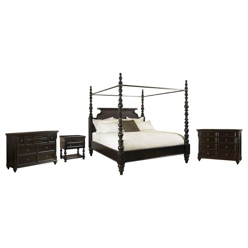Conjunto de muebles de dormitorio tradicional, estilo británico, Colonial y de campaña, madera sólida negra, cuatro póster, cama estándar