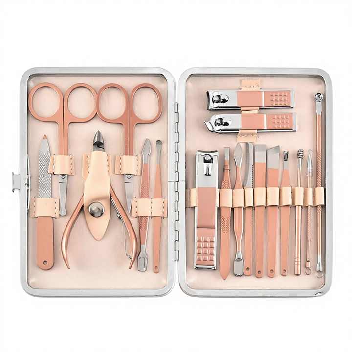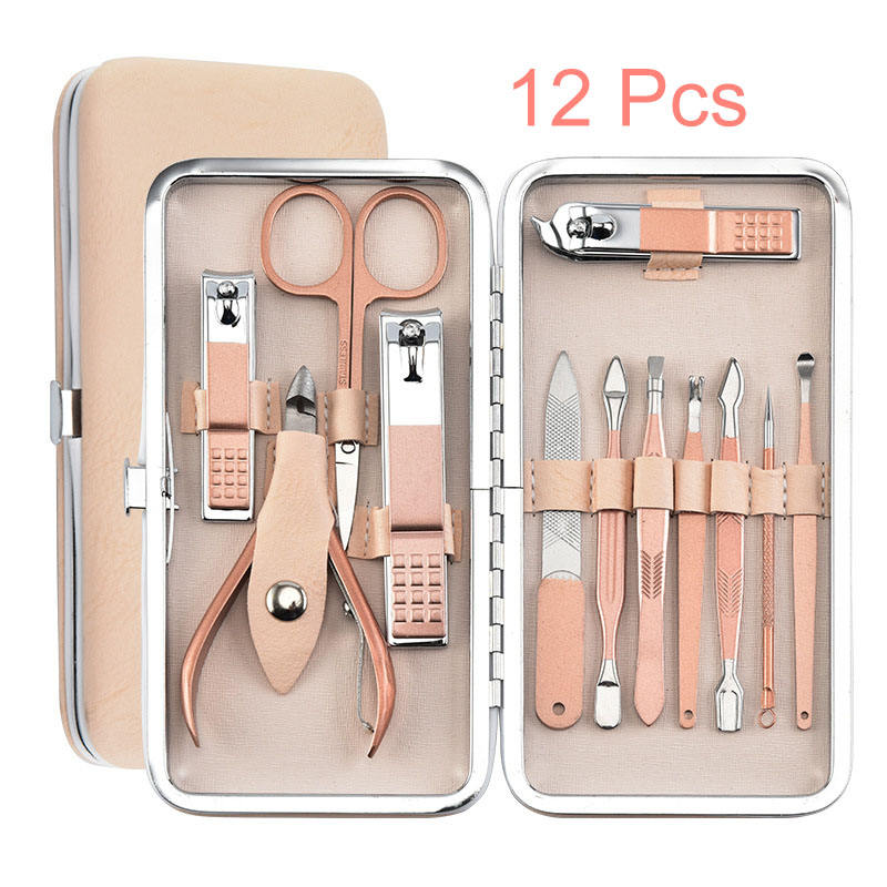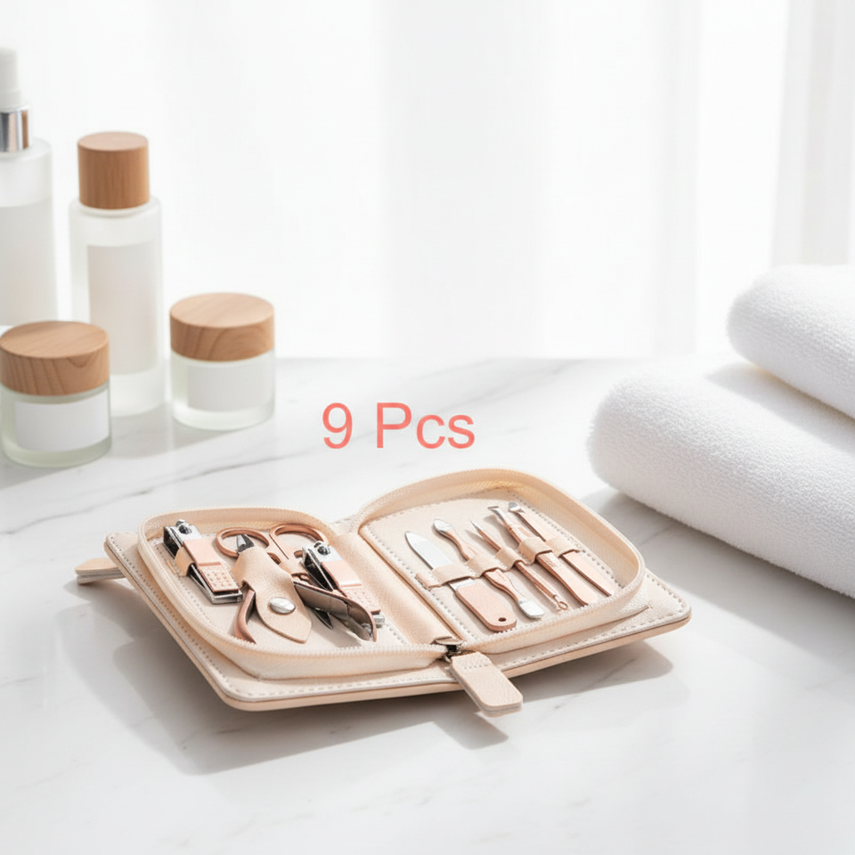 Set de Manicura 4/7/9/12/15/18 Piezas Cortaúñas Kit de Herramientas de Pedicura de Acero Inoxidable Estuche de Cuero PU Diseño Bonito