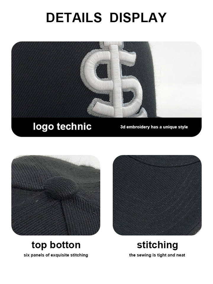 Gorra snapback personalizada 6 paneles, visera plana, bordado 3D, logo bordado, para deportes al aire libre, nueva moda, gorra de béisbol para hombre