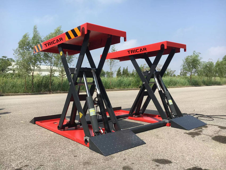 Elevador de Tijera Neumático Tricar de 1200mm, de Dos Postes, Accionamiento Hidráulico, Certificado CE, Capacidad de Elevación de 4T, para Estacionamiento