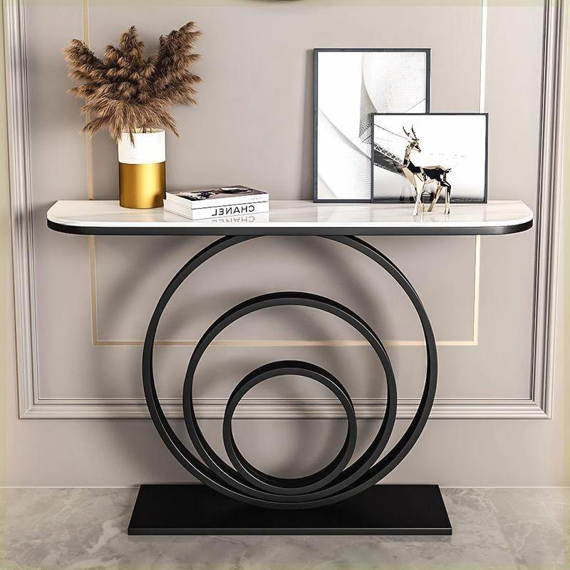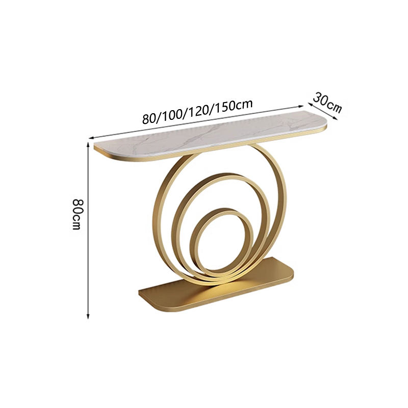 Mesa consola metálica de lujo con tapa de mármol para entrada/vestíbulo; muebles modernos de fábrica para sala de estar y pasillo
