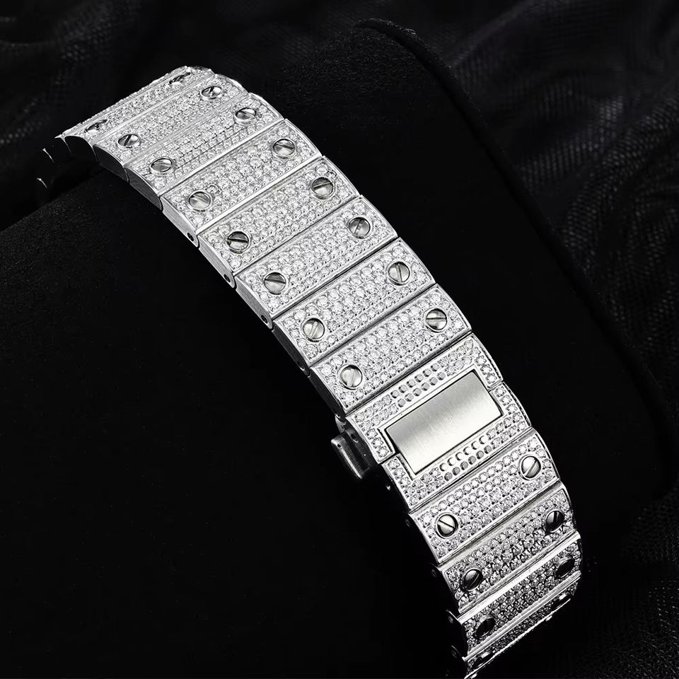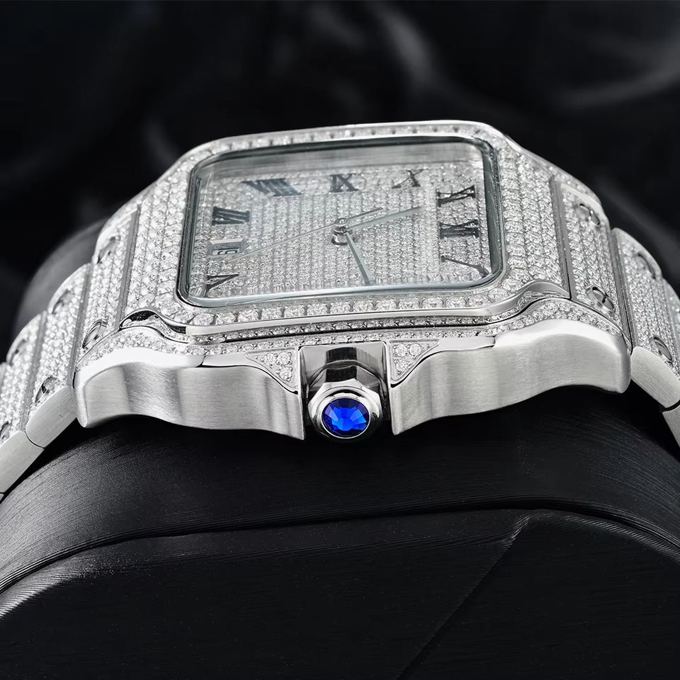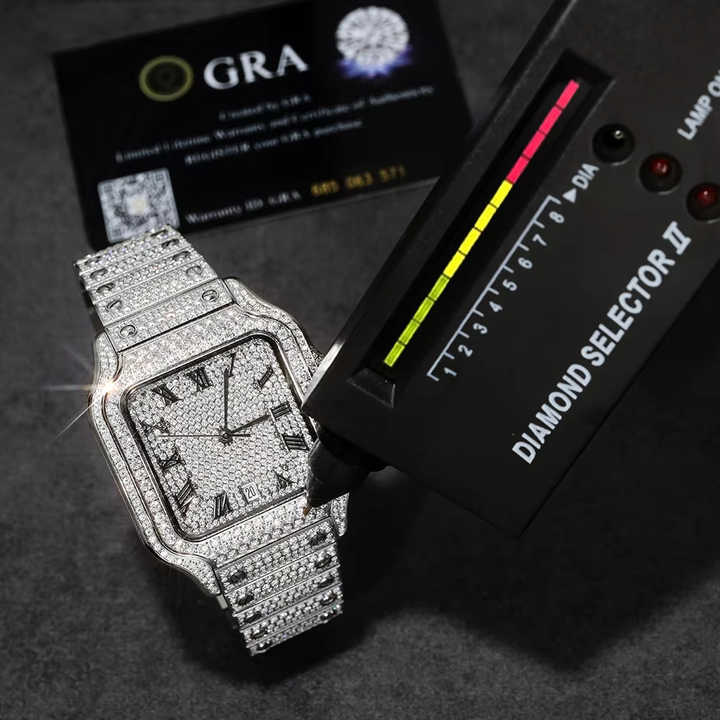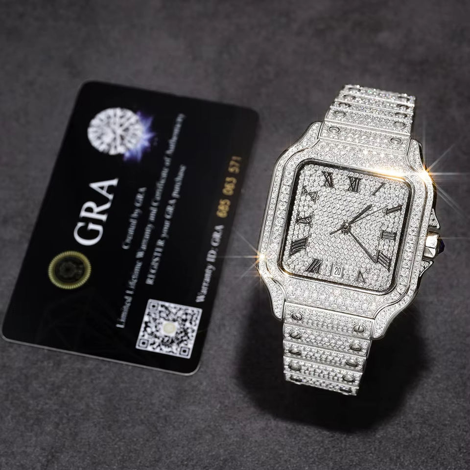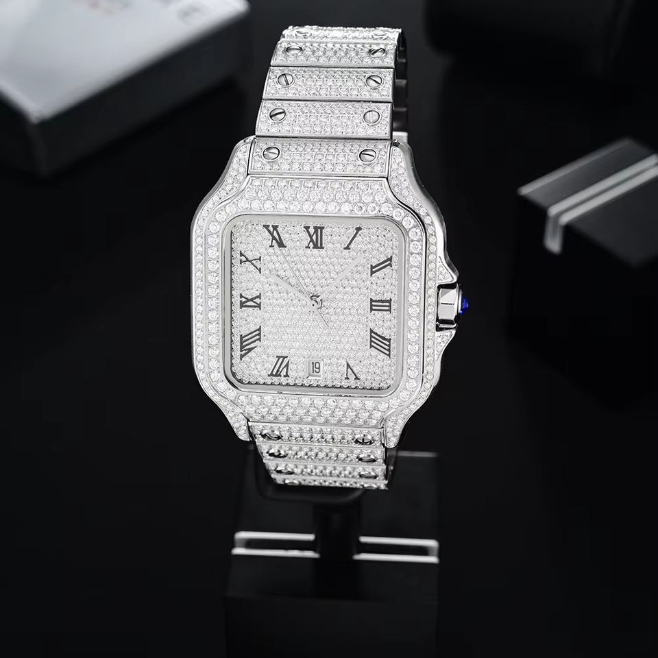 Relojes de Hombre Hiphop Personalizados con Logotipo Grabado, Movimiento de Acero Inoxidable, Totalmente Cubiertos de Moissanita, Automáticos