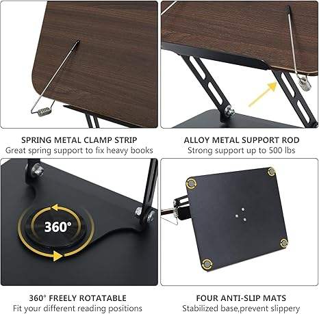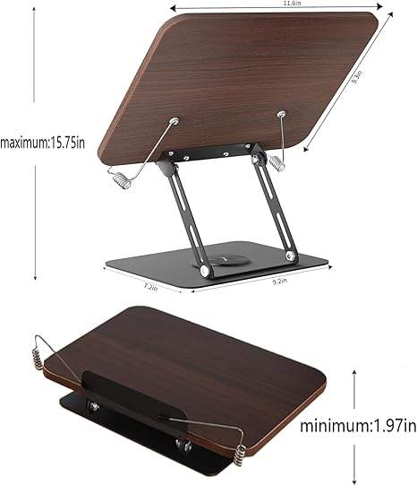 Soporte de lectura de madera Soporte de libro, Soportes de libros ajustables para leer Manos libres, Soporte de libro de cocina plegable Libro de recetas
