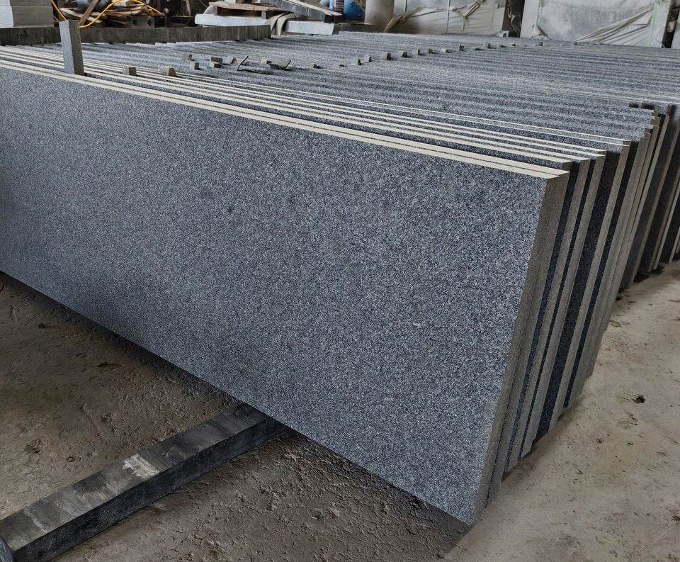 Escaleras de Granito Gris Oscuro Natural G654 Hechas a Medida, Acabado Flameado, Baldosas para Exteriores, Pavimento de Granito de 50 mm para Uso Exterior