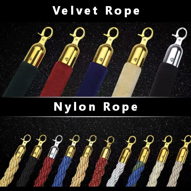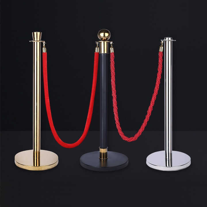 Juego de poste de cola de barrera de Control de multitudes de acero inoxidable de Oro Negro Cuerda de conserje plana de terciopelo rojo para multitud de camino de Hotel