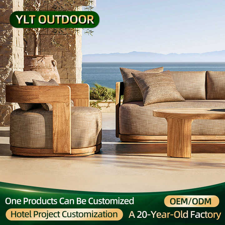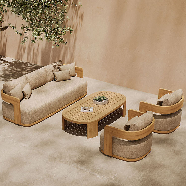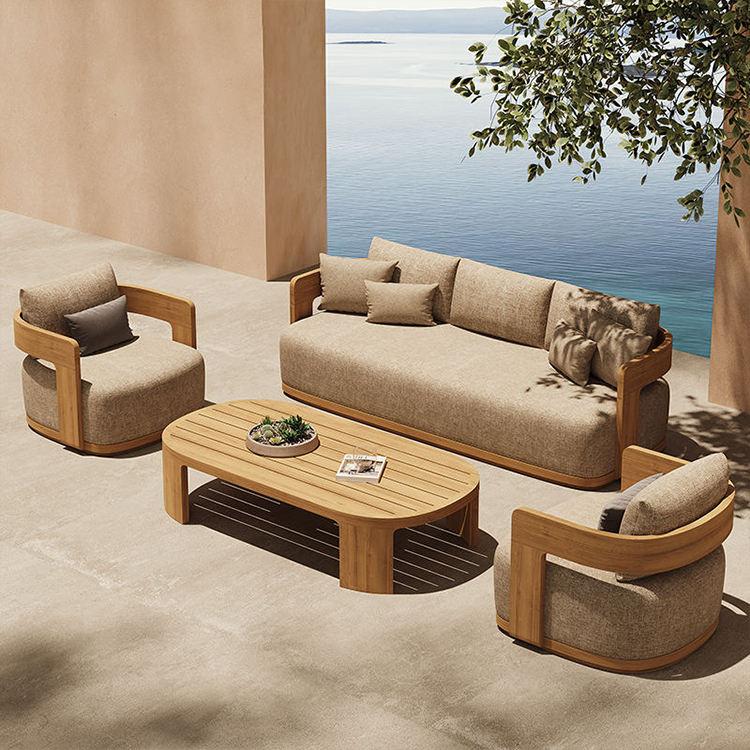 Muebles de exterior estilo nórdico para villa: sofá de jardín impermeable de madera de teca, fabricante