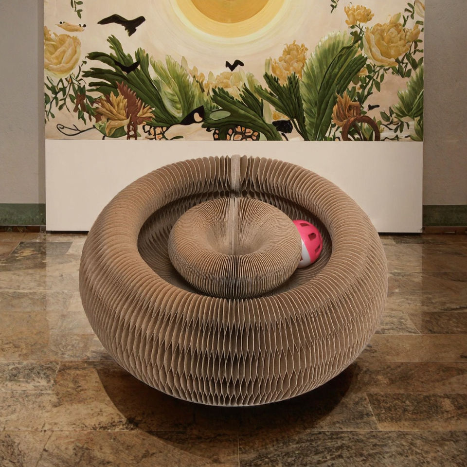 Rascador para Gatos Moderno y Lujoso, Tabla de Rascar Plegable de Cartón y Juguete de Pelota, Casa para Gatos de Estilo Clásico y Lujoso Hecha de Papel Resistente