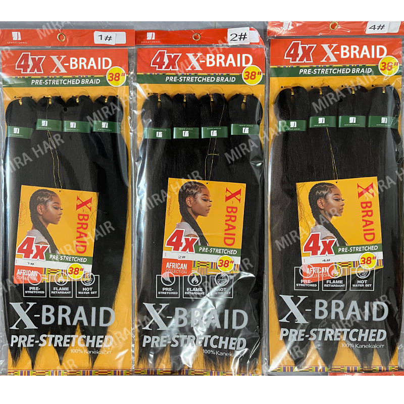 Extensiones de Cabello Sintético Preestirado de 38 Pulgadas, 4x, para Trenzas, de Alta Calidad, Suaves, para Mujeres, Venta al Por Mayor de Fábrica